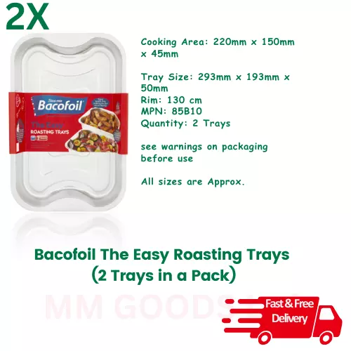 Bacofoil Easy Roasting Tray 2 pack | Twin Pack tray size 293cmm x 193mm x 50mm